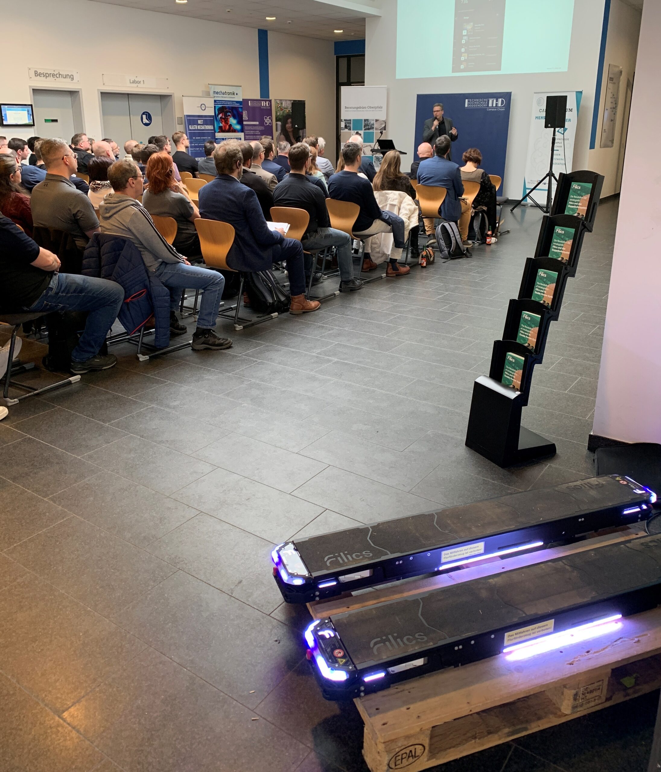 Neben den zahlreichen Industriepartnern präsentierte sich auch der Technologie Campus Cham mit aktuellen Forschungsprojekten und Kooperationsmöglichkeiten für Unternehmen. Prof. Tobias Schaffer unterstrich die Bedeutung der engen Zusammenarbeit zwischen Wissenschaft und Wirtschaft: „Wir sind offen für neue Partnerschaften und gespannt auf zukünftige gemeinsame Projekte mit Unternehmen aus der Region. Gerade in der Robotik und Automatisierung bietet die Zusammenarbeit enormes Potenzial.“